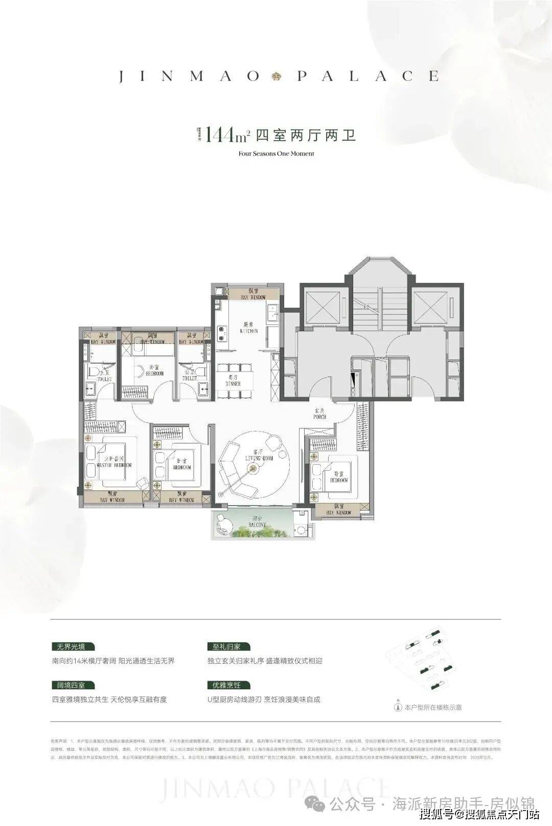● 建面约190㎡4房:楼王位置的顶奢大平层,同价位段在杨浦只能买到约120㎡3房!